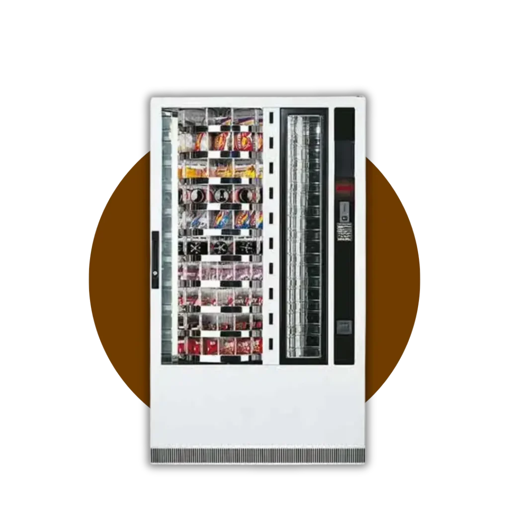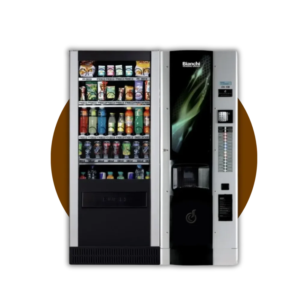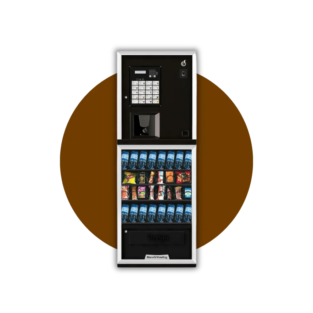 Egy elegáns és modern kombinált ital automata, amely a forró italok mellett snack és üveges ital termékek adagolására is képes.