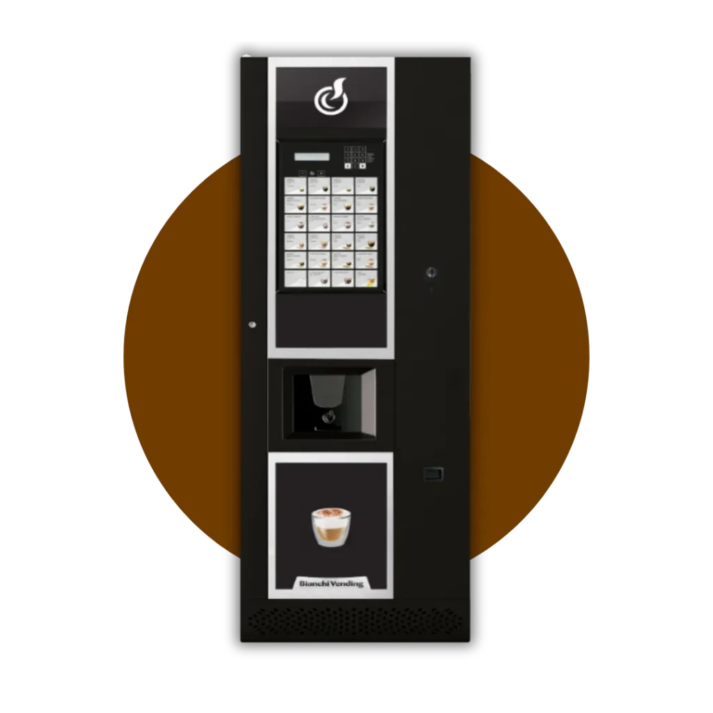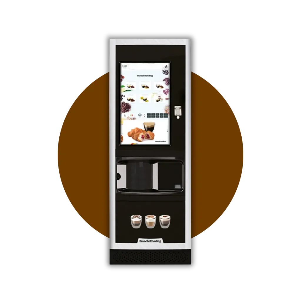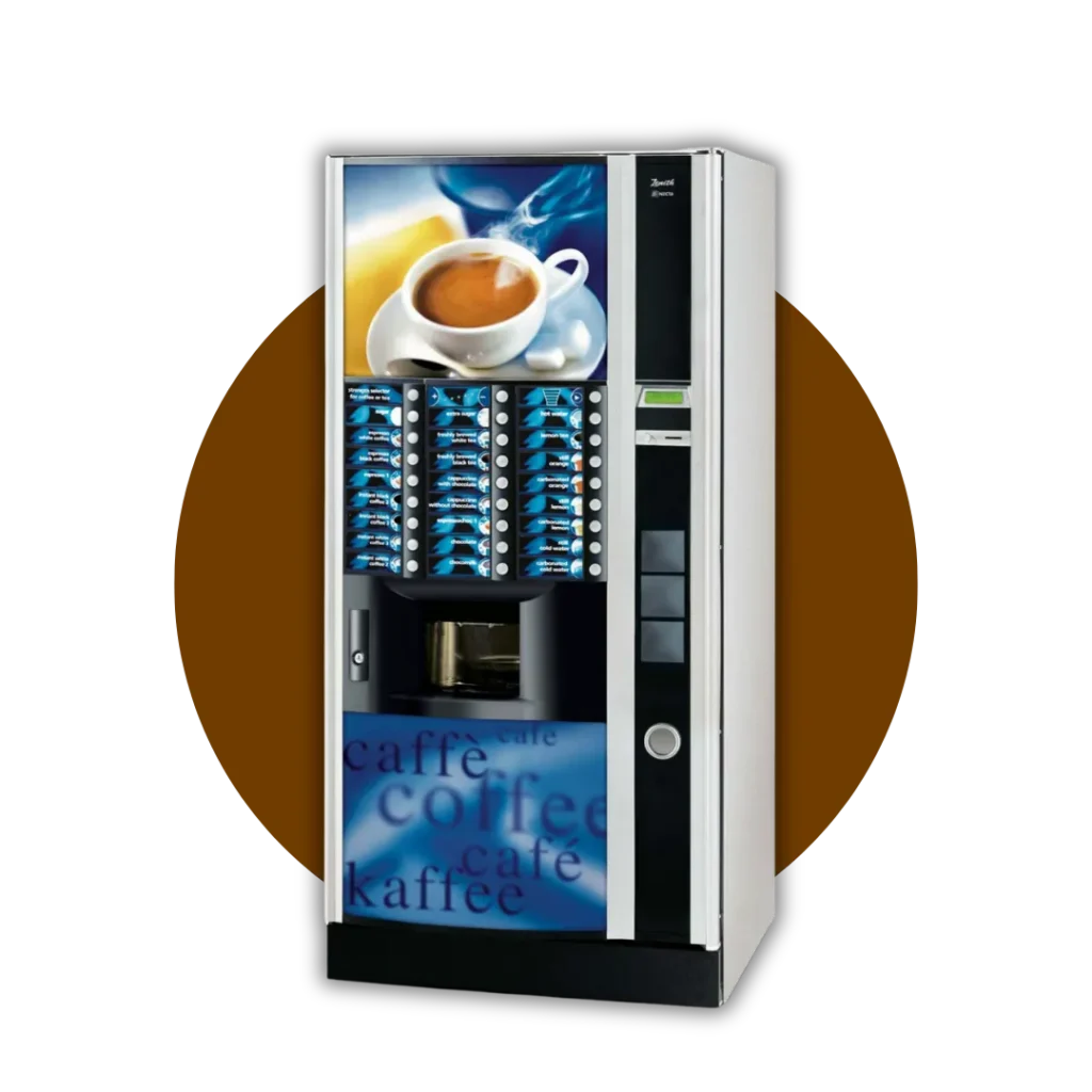 Egy elegáns és modern kombinált ital automata, amely a forró italok mellett snack és üveges ital termékek adagolására is képes.